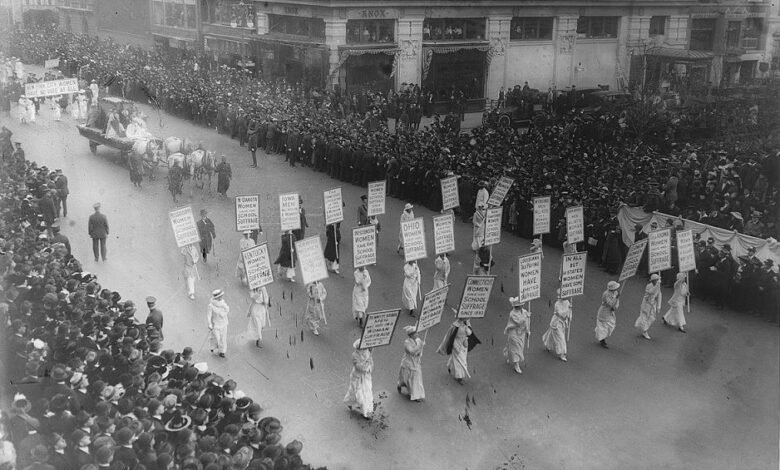 Suffragists marching, probably in New York City in. New York, 1915. [Photograph] Retrieved from the Library of Congress