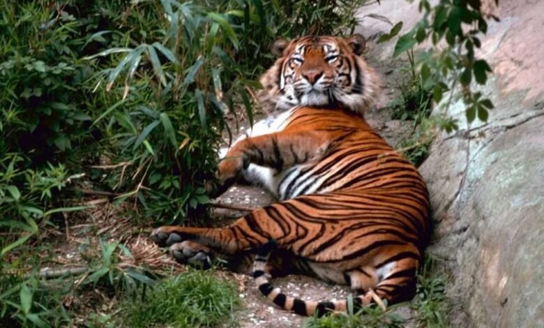 The carnivore was hauled back to the camp where the damaged pen had been repaired.  However, when putting the animal into its cage, the iron door slammed onto the tiger’s tail injuring the beast.