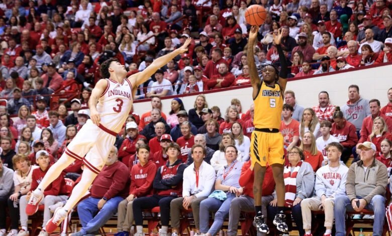 Simeon Cottle, right, of the Kennesaw State Owls takes a shot during an NCAA game in 2023. Cottle is reportedly one of 20 people, including other NCAA basketball players, charged Thursday in a college point-shaving scheme. (Image: Justin Casterline/Getty Images)
