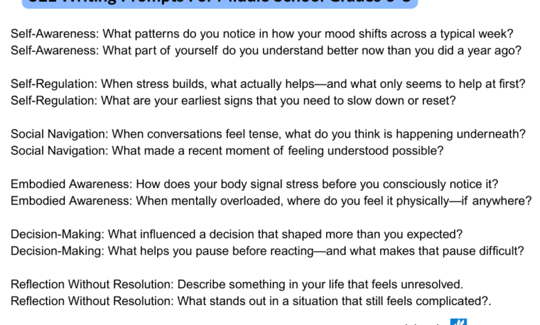20 SEL Writing Prompts For Middle School Grades 6-8