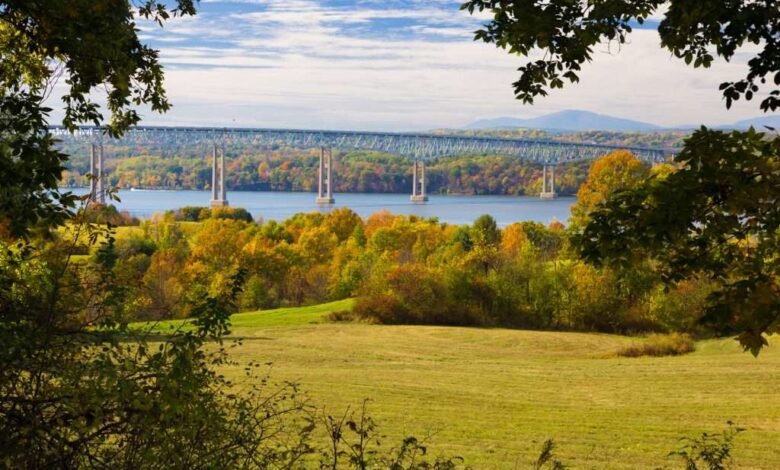 Landscape with Kingston–Rhinecliff Bridge (George Clinton Memorial Bridge) over Hudson River, Trees in Fall Colors (Foliage) and Blue Sky, Red Hook, Hudson Valley, New York. Landscape with Kingston–Rhinecliff Bridge (George Clinton Memorial Bridge) over Hudson River, Trees in Fall Colors (Foliage) and Blue Sky, Red Hook, Hudson Valley, New York. The New York Genealogical & Biographical Society (NYG&B) and other genealogy experts will meet for New York’s largest statewide family history conference this September.