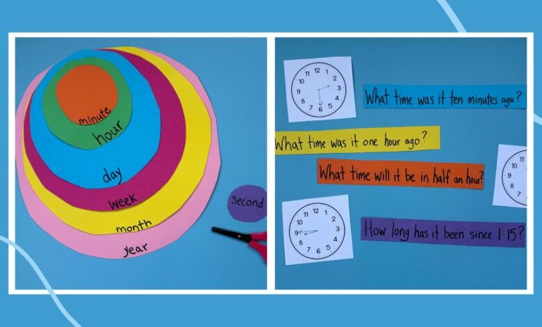 We love this activity that helps students put different units of time in perspective. To create this time wheel, students will need to cut seven concentric circles out of colored construction paper. Start with the smallest circle, then cut each of the following circles a bit larger. Each circle should be a different color. Connect the circles together with a brad. Then, starting with smallest circle and working their way out, have students label the circles in this sequence: