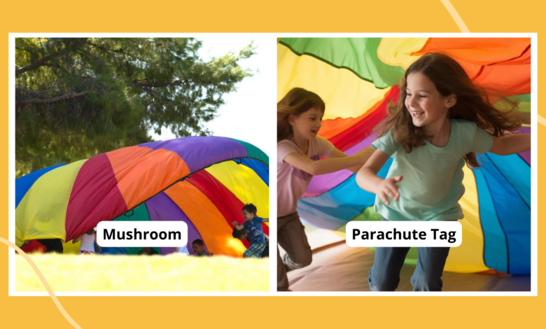 kids going under a parachute, parachute games for kids