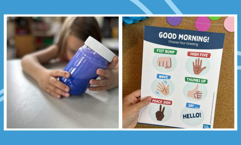 Daily greeting routines build community and confidence. They can also be used as a social-emotional learning check-in. Use this daily greeting printable to give students ideas for how they can greet you. You can use the ideas on the printable or create your own with your class.