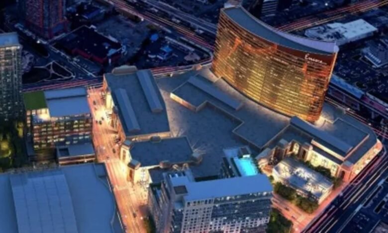 A casino rendering for Tysons in Fairfax County uses Wynn Resorts’ Encore likeness for the resort component. Wynn Resorts is not directly involved in the Northern Virginia casino talks. (Image: Comstock Companies)