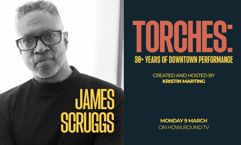 On 9 March 2026, TORCHES will continue with a conversation with award winning artist James Scruggs who creates live and virtual,  large-scale, topical, often interactive theatrical productions.