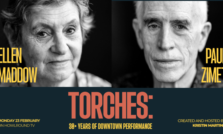 On 23 February, TORCHES will continue with a conversation with the prolific Ellen Maddow and Paul Zimet. Both are award-winning multi-hyphenate artists who founded the Talking Band over fifty years ago and have been working in New York City since.