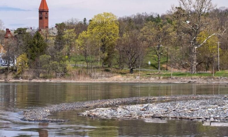 Photo of location of future Aurora NY lake shore park with Wells College in background, 2025 (courtesy Chris Ray, provided by FLLT).
