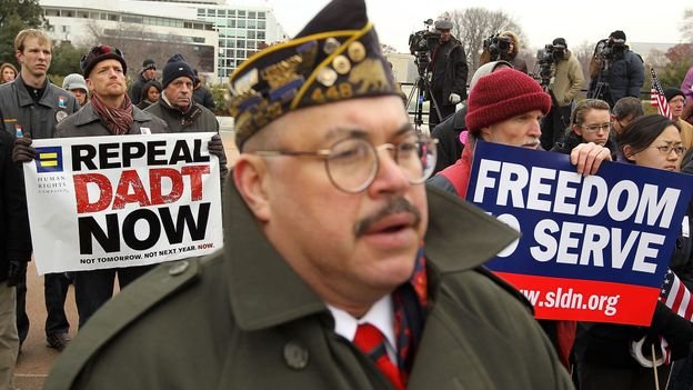 Getty ImagesEven with its homoerotic frisson, this sense of absurdity reflects what was a desperately sad and destructive real-life situation for many service members. “Some of the former marines who worked on this series [as historical advisers] aren’t gay, but they found these policies just as absurd [as their gay counterparts],” Parker says, pointing to the way they seemed “completely counterintuitive to the social cohesion” at the core of military life. Cope White says his main reason for leaving the Marines after six years of service was the constant toll of lying – something Cameron has to navigate throughout the series. “The Marines is a place to find your authentic self,” he says. “But I wasn’t allowed to be my authentic self, and I couldn’t continue being inauthentic with people that I admired and respected so much.”