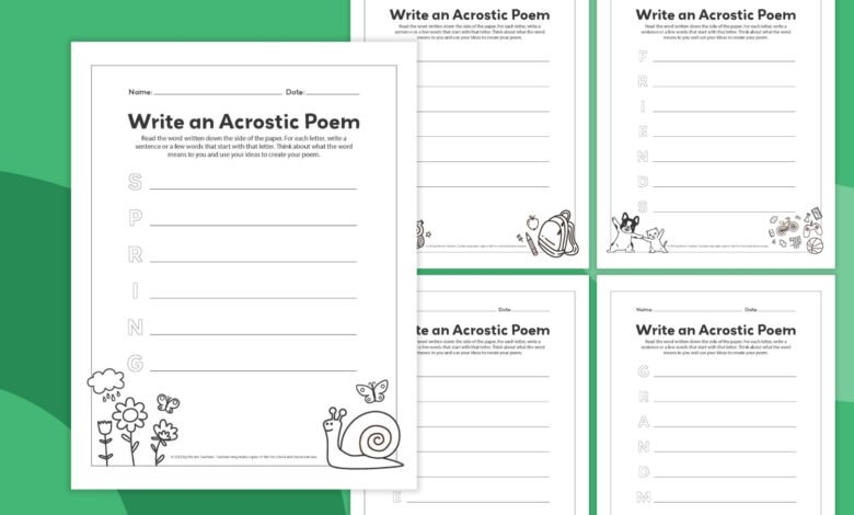 Acrostic Poem Template Bundle (Free Printables)