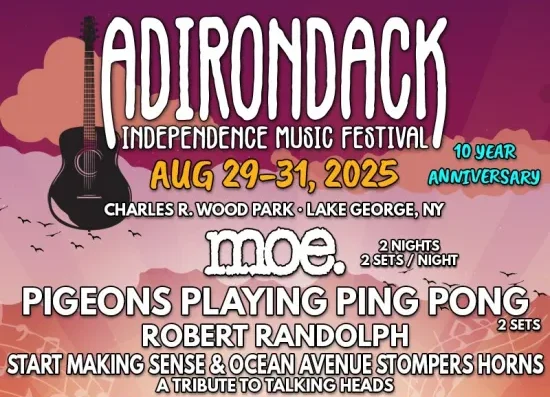 Adirondack Independence Music Festival 2025Adirondack Independence Music Festival 2025The Adirondack Independence Music Festival has revealed this year’s musical lineup as it prepares to celebrate its 10 year anniversary. Once again, moe. will serve as this year’s headliner with two nights of much and will be joined by a host of other notable acts like Pigeons Playing Ping Pong who will play two sets.