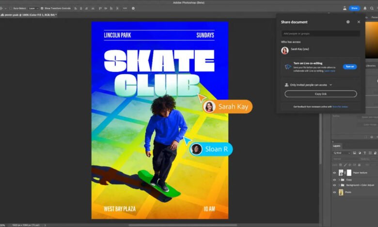 Adobe suggests a slew of uses for live co-editing in Photoshop, such as collaborating with other designers, allowing clients to directly edit and comment on a document or having students follow along to a teacher’s lesson. To be fair, my design skills might be better if I had that option during my college Photoshop class.