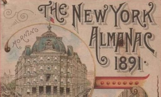 The New York Almanac for 1891The New York Almanac for 1891An almanac (often spelled in the old days “almanack”), in its simplest form, is a book containing a calendar that includes notations for holidays and holy days, as well as astronomical information such as the rising and setting of the sun and moon, the phases of the moon, high and low tides. They also often include weather forecasts and agricultural tips.