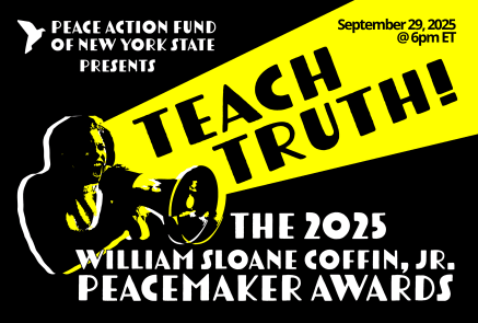 Teach Truth 2025 headerTeach Truth 2025 headerOn Monday, September 29th, Peace Action Fund of New York State (PAFNYS) will present its annual William Sloane Coffin, Jr. Peacemaker Awards to lifelong educator and former NY-16 Congressman, Jamaal Bowman, and anti-racist educator and activist, Jesse Hagopian.