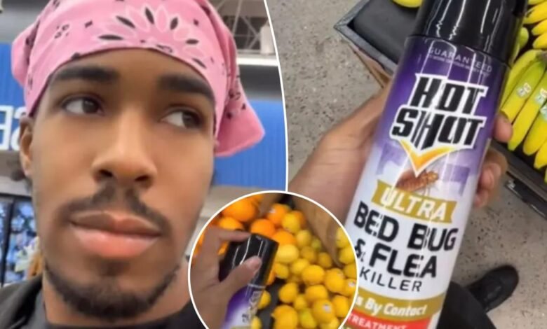 In the now-deleted video, the influencer filmed himself wearing a black hoodie and pink bandana while spraying the toxin on bananas, acorn squash, potatoes, lemons, green apples and Roma tomatoes at the store — located in a neighborhood southeast of Phoenix.