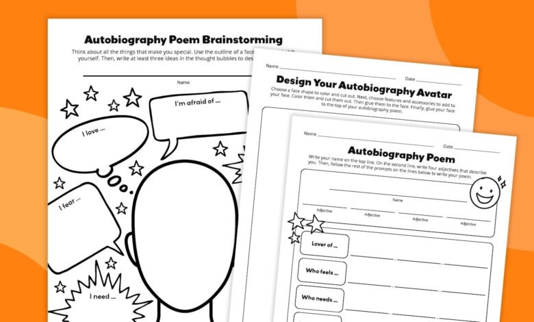 Autobiography Poem Template Bundle (Free Printable Worksheets)