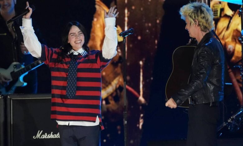 Eilish ended up performing twice at FireAid. Earlier in the night, she helped Green Day open the show at the Kia Forum. She joined the band onstage to sing the American Idiot deep cut “Last Night on Earth,” which kicked off their set. “I’m here to honor you,” they sang, “If I lose everything in the fire/I’m sendin’ all my love to you.”