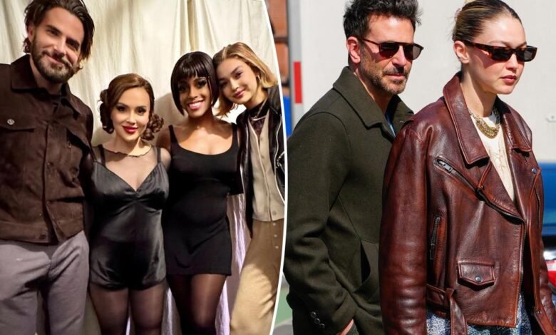 Cooper and Hadid was seen posing alongside Milano and her co-star Kimberly Marable, who both appeared to still be in costume.