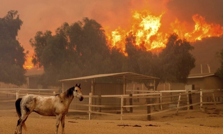 California wildfire destroys 132 buildings as raging winds spread the flames across 32 square miles