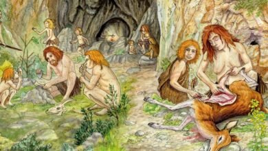 An illustration of a Neanderthal group preparing food LUIS MONTANYA/MARTA MONTANYA/SCIENCE PHOTO LIBRARY Neanderthals may have had traditional ways of…