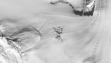 Satellite image of the subglacial lake region after the outburst flood occurred, showing the fracturing of the ice sheet 10.1038/s41561-025-01746-9…