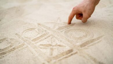 Two good players will always end noughts and crosses with a draw. Mikhail Rudenko/Alamy On the beach, scratching marks in…