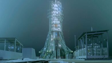 A Soyuz MS rocket at Baikonur Cosmodrome in Kazakhstan Rhiannon Adam This ghostly image of a Soyuz MS rocket at…