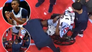 Wizards’ Carlton Carrington exits in wheelchair after hitting head