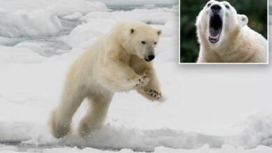 Canadian man leaps onto polar bear lunging at wife