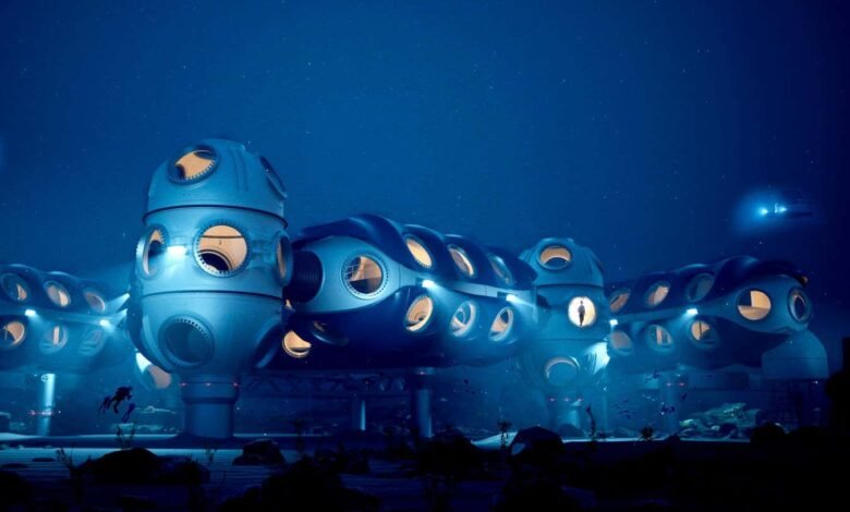The initial habitat was a series of rafts and platforms with tunnels connecting to subsea levels. People lived in structures on the surface, but, as they got used to it, increasingly used subsea areas for eating and sleeping as well as storage. The habitats were built using a 3D-printing method called wire arc additive manufacturing, which allowed extra strength to be added in regions experiencing the most pressure.