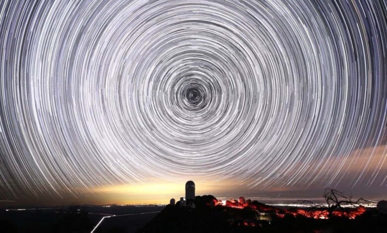 Star trails over the Mayall Telescope in Arizona, which houses the Dark Energy Spectroscopic Instrument