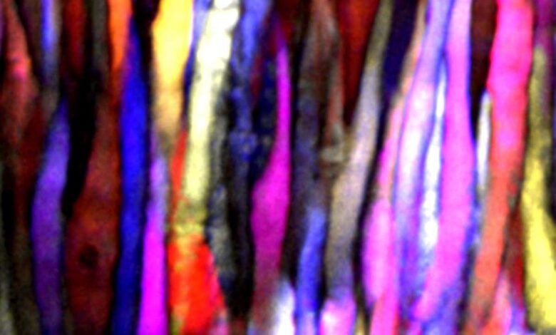 Charlotte Buckley at the University of Strathclyde, UK, who scooped first prize, is exploring how cells in artery walls respond to calcium levels and how this leads to high blood pressure, stroke and dementia. A fluorescent dye shows calcium levels at different times in a recording: blue shows this mineral released from stores inside cells at the start, while later emissions run through purple, pink, red, orange, yellow and then white.