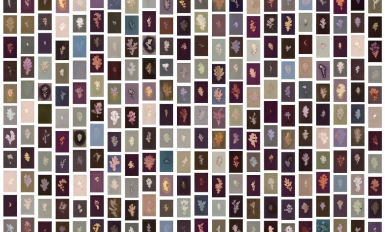 She wasn’t allowed to remove anything from the ecosystem, so the forest became her studio: each fallen leaf was placed on expired photo paper, then exposed to sunlight, before being returned to the oak grove. “A lot of the photographic process is a scientific process,” says Hewitt. “It’s really about time and light.”