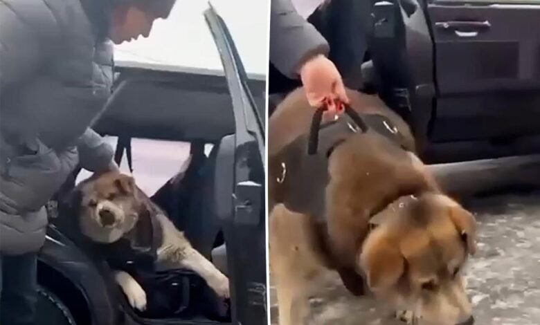 Dog weighing a whopping 144 pounds can barely get out of car after arriving at fat camp