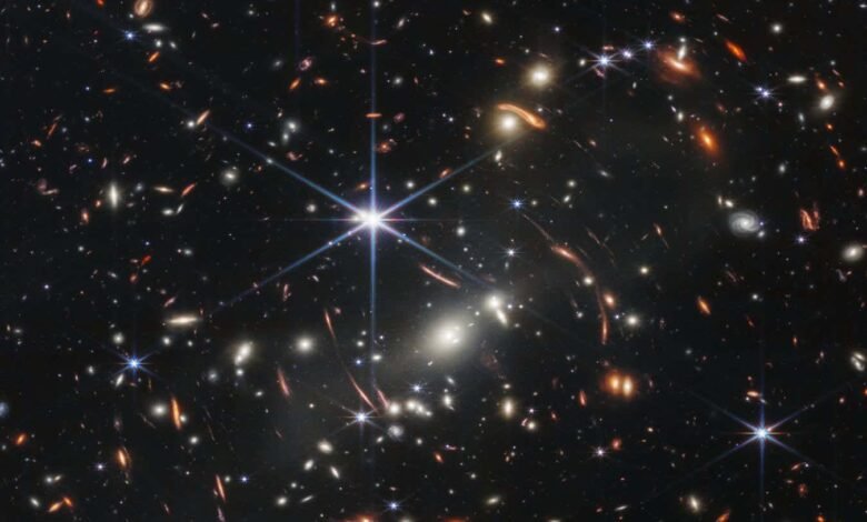 A deep-field image captured by the James Webb Space Telescope containing thousands of distant galaxies