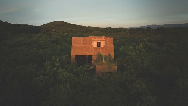 This is the porch of a family-owned bolthole in Valle de Bravo, a popular holiday destination for inhabitants of Mexico City, completed in 2020. Rainwater is harvested in this space, which contains a bathhouse, plunge pool under a skylight, steam shower and a sauna running off solar power. While blurring any division between indoors and out, this room provides shelter – vital in Mexico where it rains heavily from June to October. “It’s an experimental house,” Javier Sanchez, one of the practice’s architects, tells the BBC. “It’s rare to construct houses in wood in Mexico.” The walls and roof are made of pine. Sanchez adds that ferns and an oak tree were planted here “in homage to a forest that existed here before”.