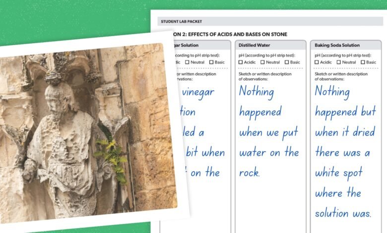 Deep connections and understanding take place when students see how what we’ve been teaching them impacts the real world. That’s why this experiment is a perfect complement to your lessons on acids and bases. It gives students a hands-on opportunity to explore the real-world impact of acid rain. By observing its effects on both natural and man-made materials, students can connect abstract chemical concepts to environmental science, deepening their understanding and making the topic more engaging and relevant.
