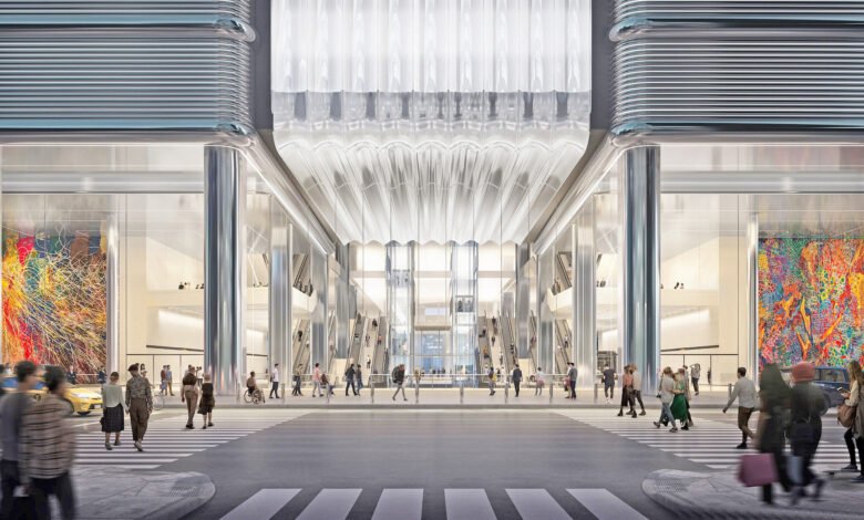 The project also includes the permanent closure of a portion of 41st Street between Eighth and Ninth Avenues, a central main entrance, additional street-facing retail, and a large multi-story atrium.