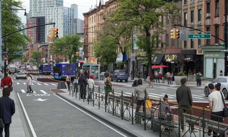 Flatbush Avenue is getting faster (and safer). Department of Transportation Commissioner Ydanis Rodriguez on Friday announced work will begin this fall on center-running bus lanes along the busy Brooklyn corridor, from Livingston Street to Grand Army Plaza. The overhaul aims to speed up trips for 132,000 daily riders, where buses now average less than 4 miles per hour. Slated for completion in 2026, the project also includes pedestrian islands with covered seating, shorter crossing times, and updated curb regulations to support local businesses.