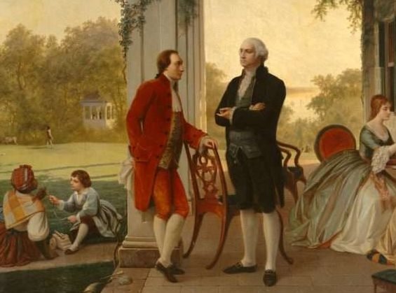 Illustration: George Washington and Lafayette at Mount Vernon, 1784 by Rossiter and Mignot, 1859.