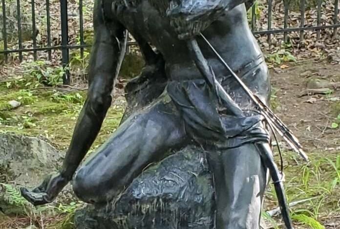 When Commissioner Pratt’s term as the Conservation Commission drew toward a close, he enrolled as a lifetime member in the New York State Historical Association and decided that the Lake George Battlefield Park was a more appropriate location for the “Mohawk Warrior” sculpture.