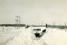 Illustrations, from above: The new bridge’s ribbon cutting; and the 1934 Boquet River Bridge Department of Public Works plaque.