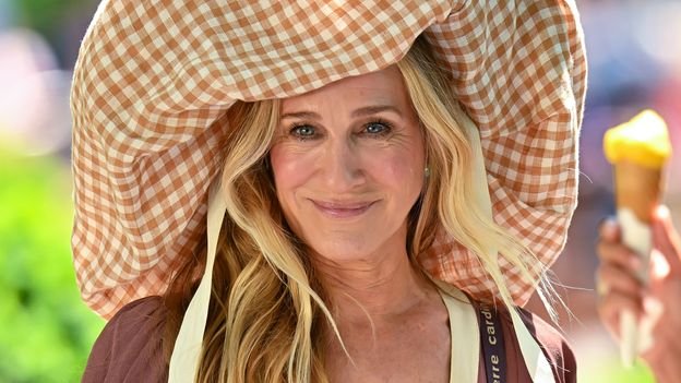 Parker had been snapped filming as Carrie Bradshaw for the third season of And Just Like That… in New York with an incredibly oversized floppy, brown and white gingham bonnet with two straps hanging down. “Is that a pillow case?” one person commented after Parker also posted a picture of her wearing the offending item on her Instagram account, which ended up on global news sites. “Wearing a diaper bag as a hat, clever!” posted another, while there were other less-than-favourable comparisons to Strawberry Shortcake dolls from the 1980s and Little Miss Muffett, sitting on her tuffet. “It’s altogether unhinged,” a journalist from The Cut wrote, summing up the entire outfit, in which the hat was paired with a striped coloured Ossie Clark dress from 1973 and Dr Scholl’s sandals.