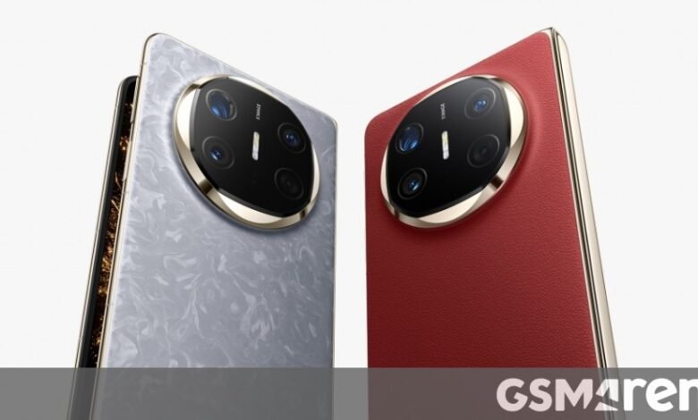 The image also reveals a flat power key, meaning it will act as a fingerprint scanner; there won’t be any under the cover display or the foldable panel. We can also assume the Red Leather option is similar to the Mate XT Ultimate, while the Gray (named Nebula Ash) has a glass finish.
