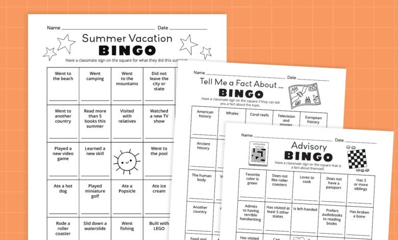 You’ll get six Icebreaker Bingo cards that ask students to engage with one another in different ways, from asking for fun facts to talking about college applications.