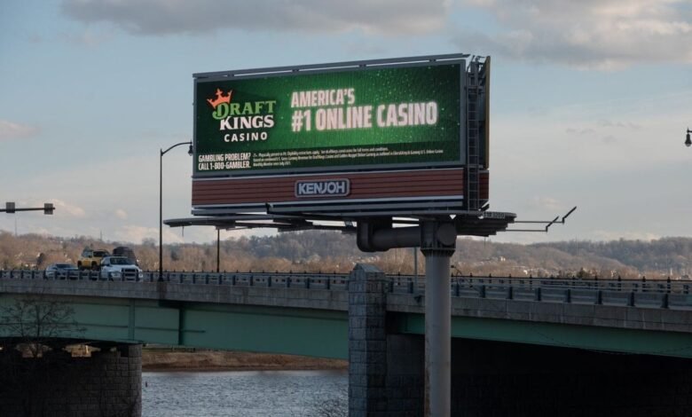 A billboard advertising DraftKings’ online casino operations in Pennsylvania is seen along a highway near Pittsburgh. An analyst said iGaming expansion is likely to be modest this year. (Image: The Wall Street Journal)