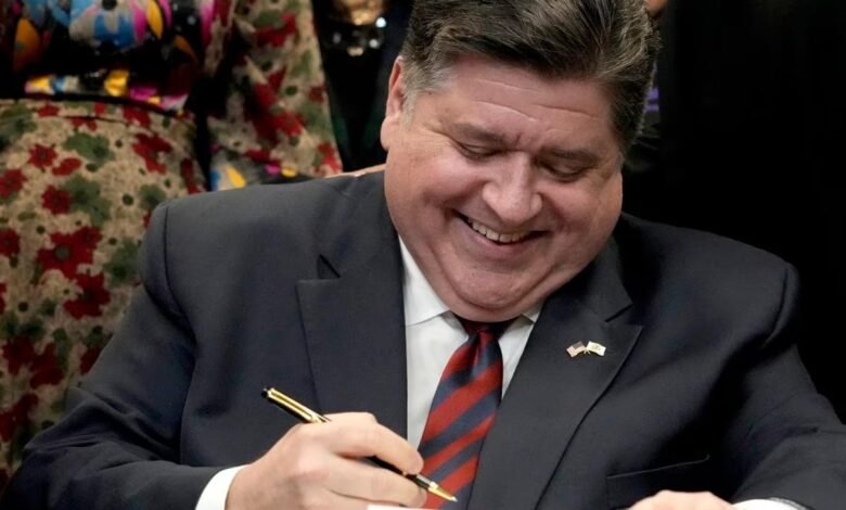Illinois Gov. JB Pritzker signs a bill in August 2023. A policy group says the state should lower sports betting taxes. (Image: AP)