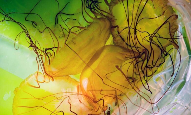 Jellyfish drift “between being an environmental threat and a source of sustainable innovation”, say the Kochs as part of their project. The number of blooms is increasing as oceans heat up and pollution and overfishing increase, with dire consequences for ecosystems and economies.