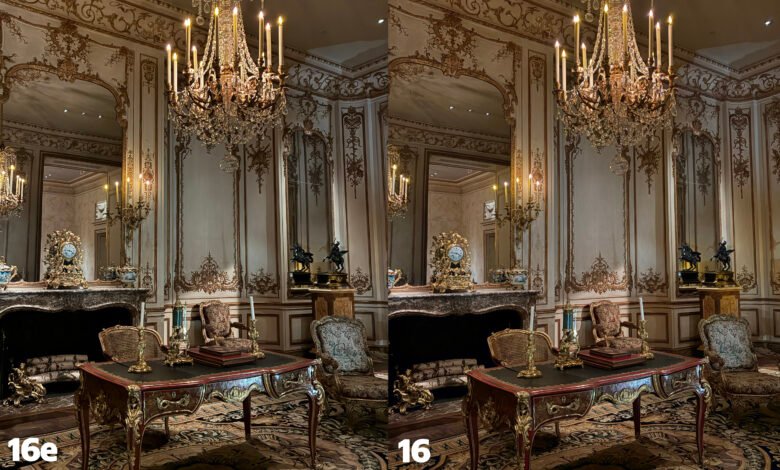 For the most part, the iPhone 16e and iPhone 16 delivered about the same level of detail, saturation and vibrancy. It was even hard to tell which of the two devices did better with my low-light shots of a beautiful chandelier suspended above a room from an 18th-century Parisian hotel. Although they have similar 48MP sensors, the iPhone 16’s is larger, which makes the closeness in performance here slightly surprising.