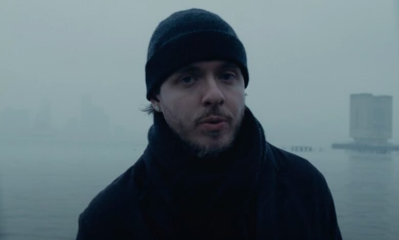 The video captures Harlow walking through a gloomy city in a coat, beanie, and scarf as he drops self-reflective bars about his career to this point over a softer, slower beat.